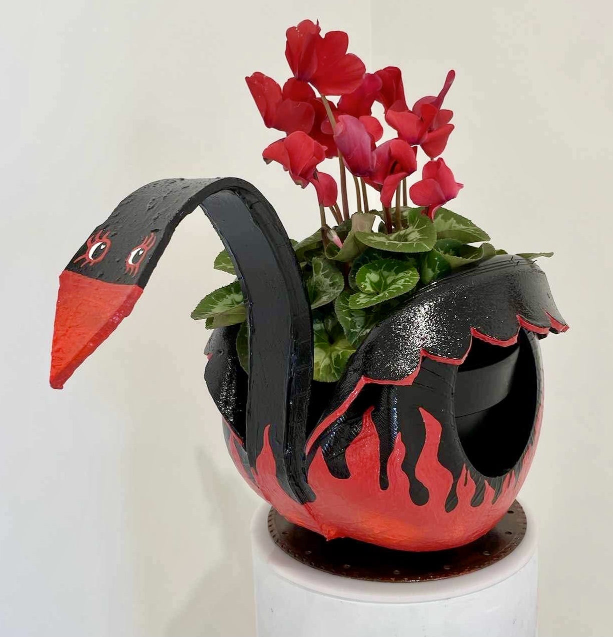 Kaufmann’s work draws inspiration from the adage, “one man’s trash is another man’s treasure.” Her work is a vibrant exploration of the overlooked and the mundane, breathing new life into objects and scenes often dismissed as obsolete or kitsch. Through her expressive use of warm, complementary colour schemes and intense lighting, Kaufmann captures the essence of discarded artefacts —tyre swans, funny stickers, vintage cars and rock and roll paraphernalia — elevating them beyond their neglected status.